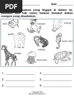 Di sini saya letakkan gambar haiwan di dalam air beserta dengan lembaran kerja.
